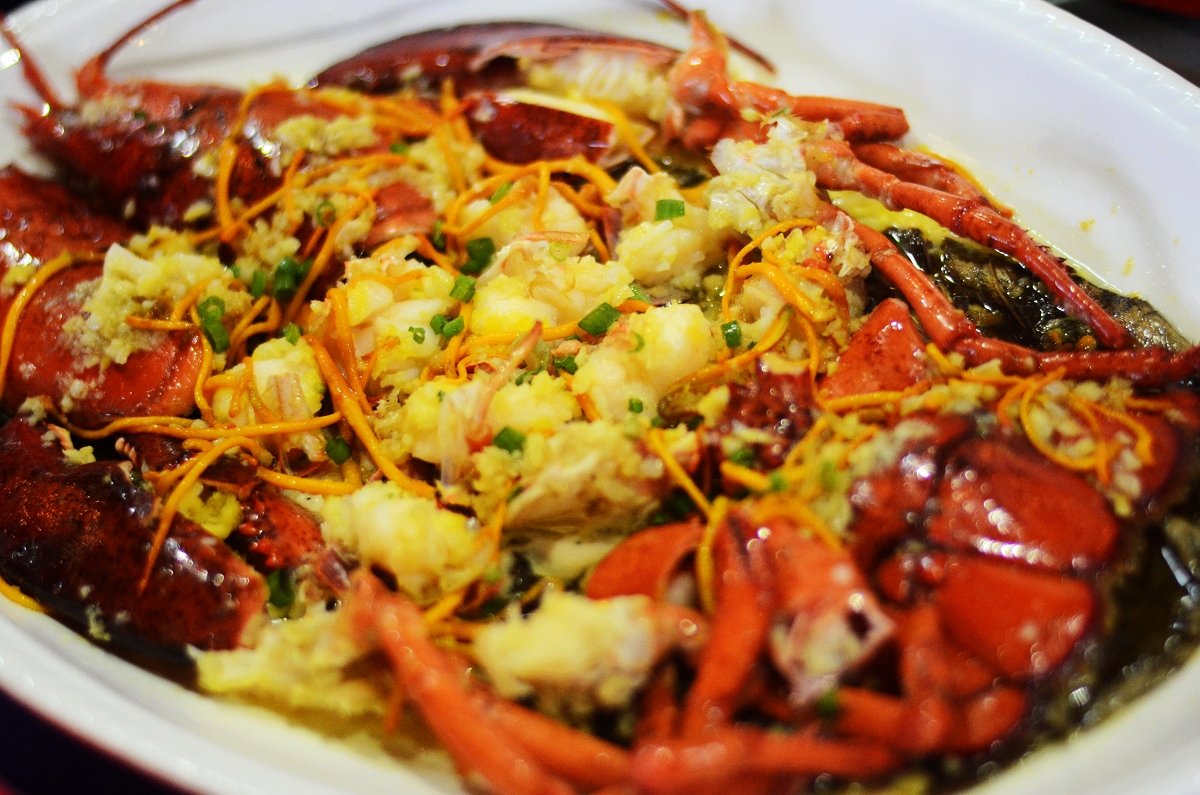 龙虾有原味蒸、芝士焗和蒜蓉粉丝蒸的三种做法。个人比较喜欢芝士焗龙虾,肉质鲜美,芝士味很浓厚。