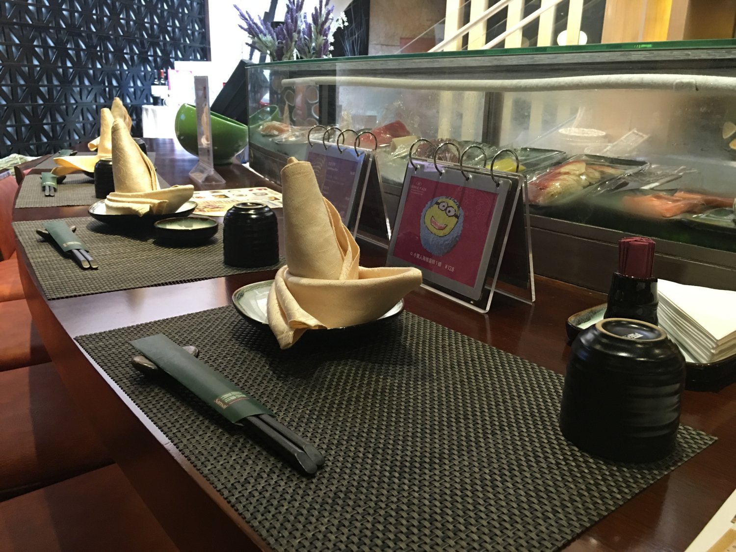 这里的服务员态度都很好,点餐和上菜都很快,不愧是五星级酒店内部经营的餐厅,服务也都是一流的。由于是自助餐,所以当然尽情的去点餐,第一轮就点了30块寿司,结果不到5分钟就上齐了,速度值得表扬。