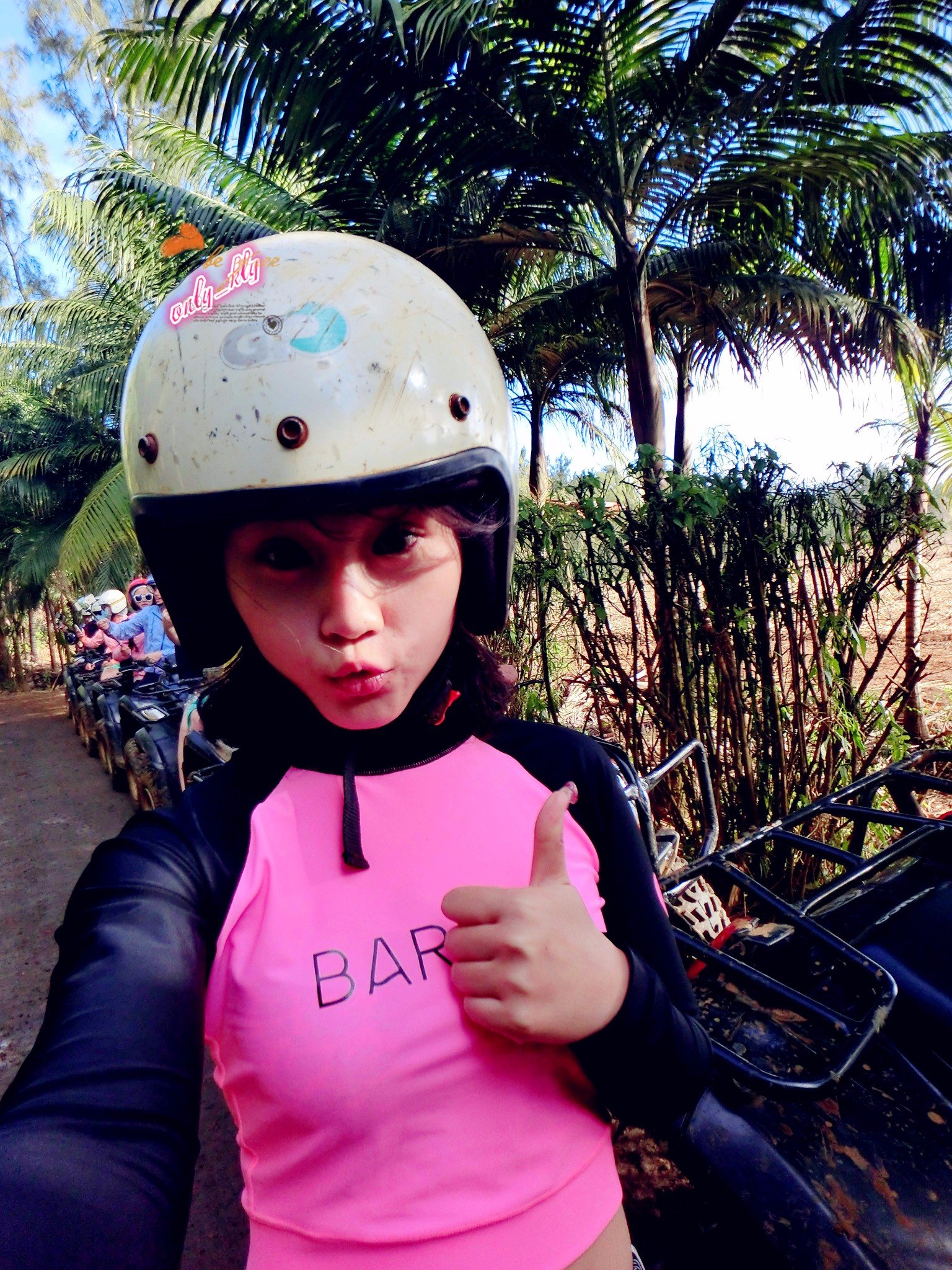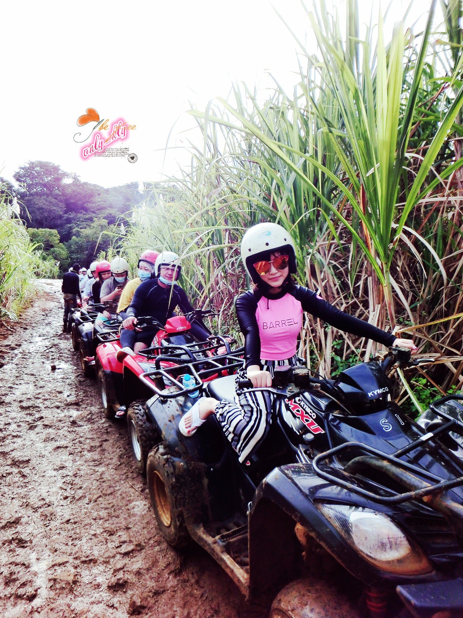 教练大概的告诉了大家油门刹车在哪里,以及需要注意的事项,戴好帽子我们就出发啦!