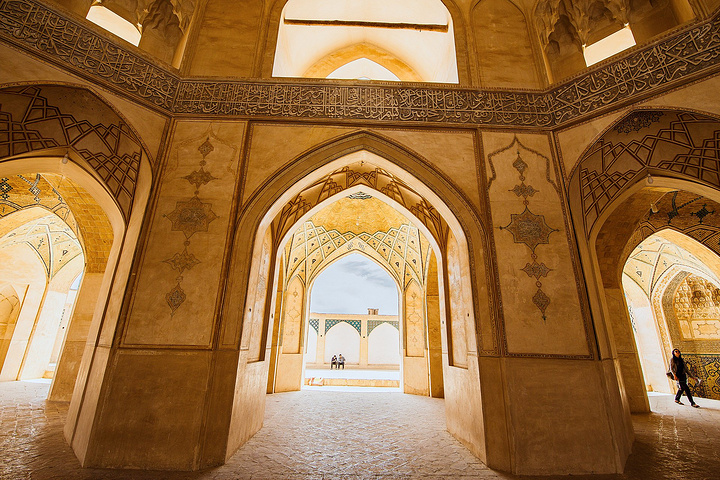 小城小庙,倒是难得清静。这座19世纪的建筑以对称设计闻名,虽然没有伊斯法罕的星期五清真寺那么宏伟,拍照却也相当出效果。偶尔的几个游客还能当道具用,风景里要有人才会生动起来么