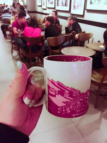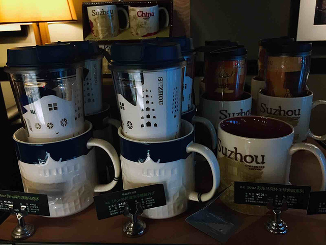 下车就看到这家星爸爸。于是就顺便来买只杯子送人。一杯子=一辈子。一点不好笑的梗。苏州城市杯红不啦叽的。105一只。奇怪的是这里的杯子都没有盒子装,盒子还要另外付费。世界各地也买了十几只城市杯了,还是第一次遇到。某人说为他的新家添砖加瓦了。好吧。