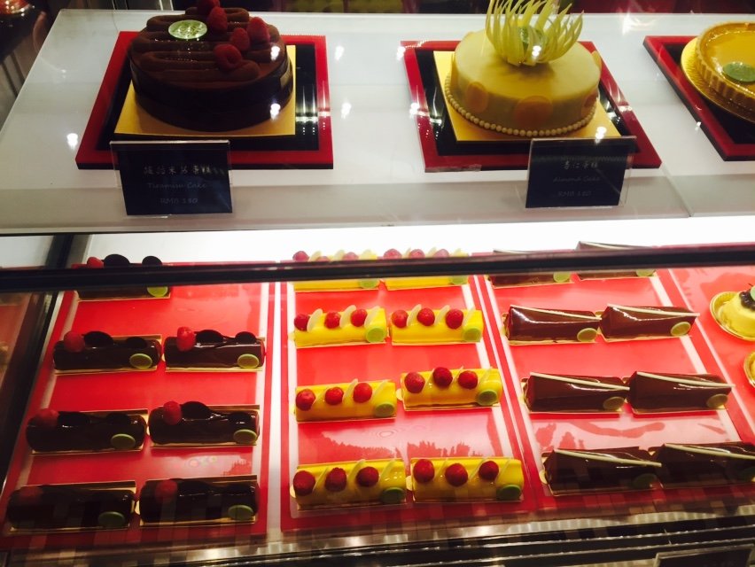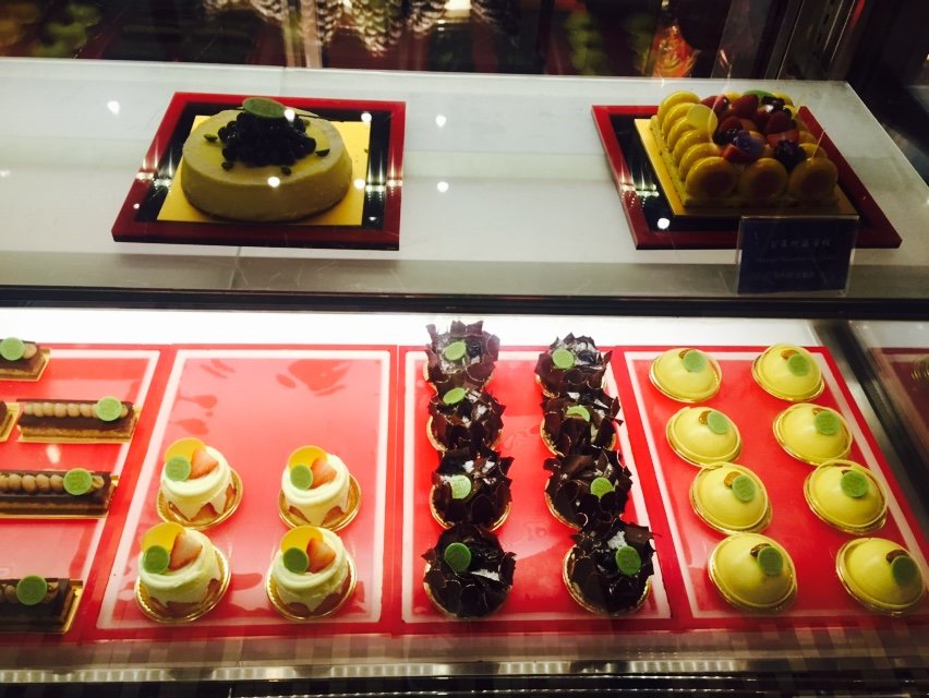 【餐品】一进来就被各式惹人喜爱的甜品造型和鲜艳的色彩所吸引,不愧五星级酒店的大厨打造。有甜品蛋糕,咖啡,罐装或者袋装的店制饼干等等。