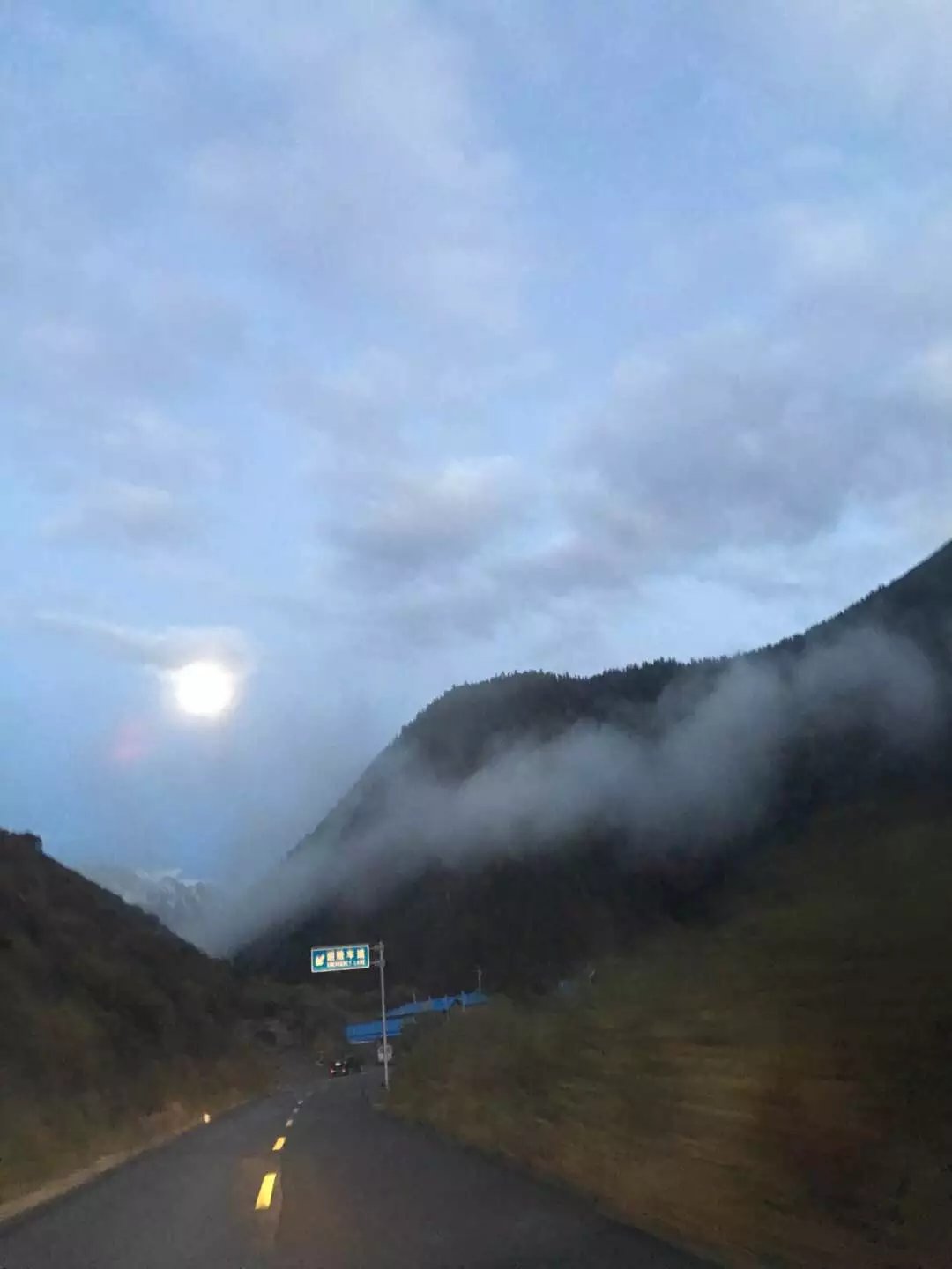 我们今晚的目的地是黑水县。天黑路险,还是个月圆之夜。路上看到一台被撞残的车子,两边安全气囊都弹开了,估计还是凶。我们要慢一点。。。