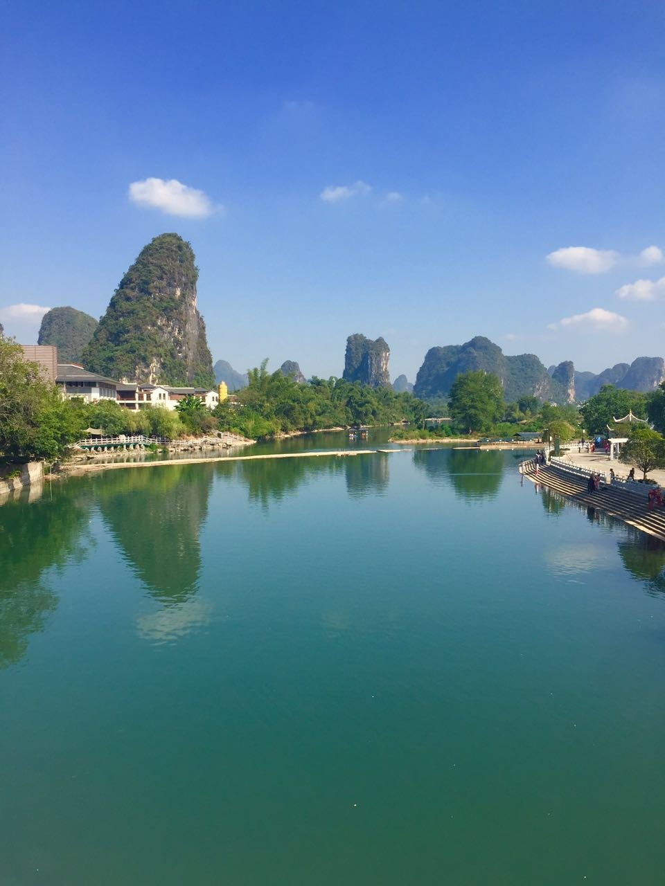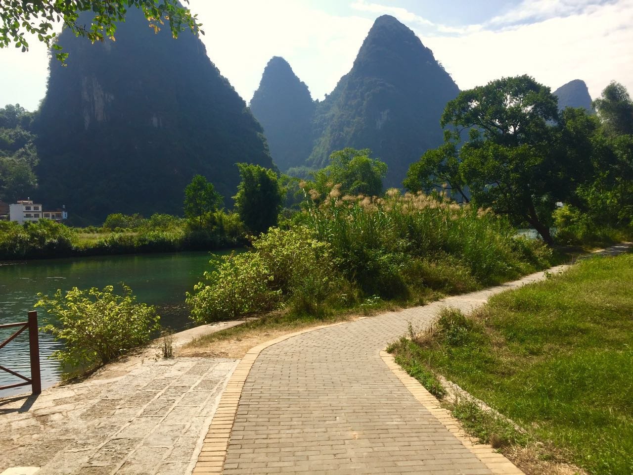与漓江还有一点不同,遇龙河周边有游道,可以步行,可以骑车。