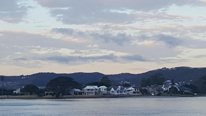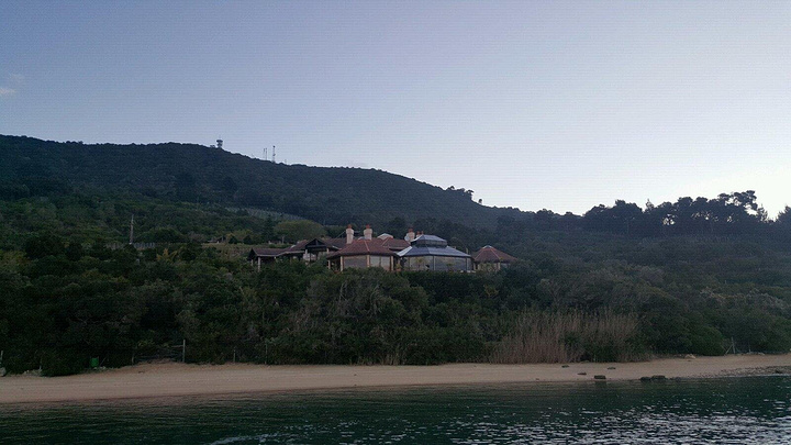 临海的小山上,一座座造型别致、五颜六色的别墅掩映在山间,每幢别墅都有私人码头海滩,如诗如画。