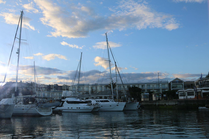 小镇的游艇码头,岸边湖中停靠着无数私家游艇,