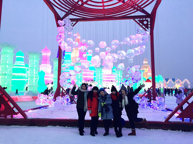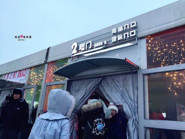 从松花江上来觉得有点饿了,和爪子去买了赛百味在寒风中边走边吃。。 然后走到苏宁易购那里,坐了126路公交车去冰雪大世界,车上人好多,大部分都是去冰雪大世界的,下车之后随着人群走了一段就到了冰雪大世界门口。路上有人卖耳包手套滑雪片之类的东西,小雪和翅膀每人买了个耳包,还买了一个屁股形状的滑雪片,好像都是十块钱一个。 冰雪大世界的门票,我们是在冰雪大世界的天猫旗舰店买的,节假日的网络门票308元每人,旗舰店买的好处是,直接可以刷身份证入园,不需要兑换什么电子票,在淘宝问了几个别的旅行社的店,他们卖的电子票都要先兑换才能入园,比308也便宜不了多少,我们怕人多排队等得久,果断买的旗舰店网络票,非常方便就进去了。