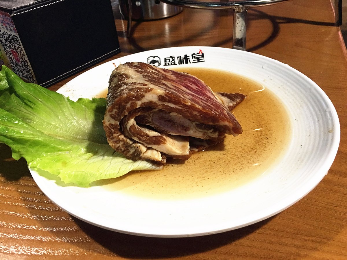 而调味牛排肉确实是第一次吃,首先就被它的卖相吸引了,很有层次,吃下去的口感也确实很有层次,而且肉质很鲜嫩,难怪是盛味堂的镇店之宝!