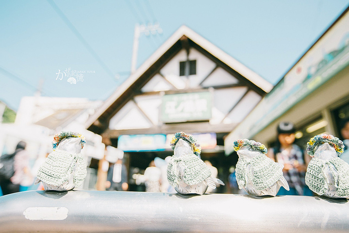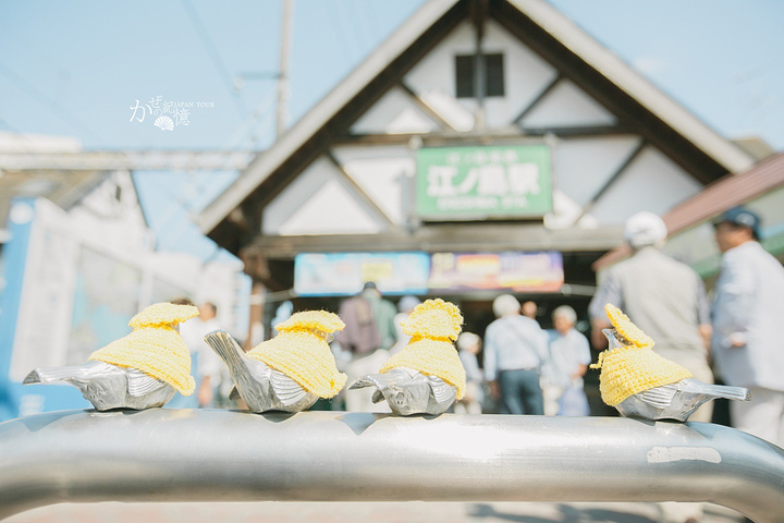 江之岛给我印象最深刻的恐怕是车站门口这些穿着衣服的小鸟了,早前在微博上就看过关于它们的故事。据说这些小鸟的衣服都是由一个老奶奶承包的,季节轮回,它们的衣服也在不断变化,这些原本冰冷的雕塑穿上衣服之后顿时就有了生命力,已然成了守护江之岛站的吉祥物。
