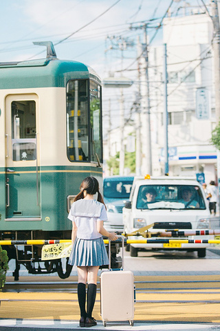 江之岛电车站外面的路口也是拍照圣地,窄窄的一条马路车流量却不小,每当电车缓缓进站,蹲点在各个角...