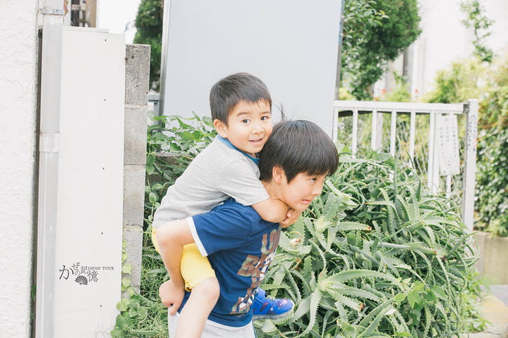 江之岛电车站外面的路口也是拍照圣地,窄窄的一条马路车流量却不小,每当电车缓缓进站,蹲点在各个角落的摄影师们就出动了。其实有好几天,我都是直接拖着箱子出门,因为拖着箱子比背包轻松多了,买了东西可以随时往里塞,累了还可以随时当凳子坐。