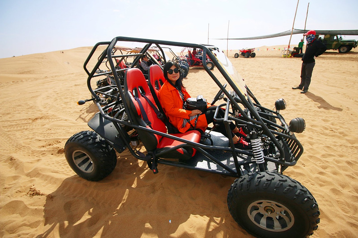 渐渐地,火车外面的世界变得广阔、荒芜。 这是我的旅行地图上还未踏上过的一片土地。 宁夏,镶嵌在几个面积庞大的西北大省之间,独特的地理位置赋予了她柔和而精致的气息。 中卫,宁夏回族自治区的中西部,紧连内蒙古和甘肃。 之所以第一站选择了中卫,而没有先到银川,是因为由南至北的路线安排。相信所有人,都不太喜欢走回头路。 先来唠唠出租车那些事儿~ 中卫的出租车绝对算得上是中卫一道亮丽的风景线。 亮黄色的出租车奔跑在城市的各个街道,而且因为中卫市区不大,很多地方都能在起步价6元之内到达。 中卫的出租车司机也绝对算得上是拉动中卫旅游业的一大支柱。 本身就不是特别便利的公共交通加上的哥的姐滔滔不绝的精彩介绍,出租车的确很容易成为游客的优先选择。 中卫的出租车价位还算合理,起步价6元,包车一天60元。 不过听人说,20元从市区到沙坡头,还是不太可信的。许多司机以“20元到沙坡头”为诱饵,上车后推荐你去腾格里沙漠的沙漠人家景区,楼主就是耳根子软的一枚案例,不过好在腾格里沙漠的沙漠人家真的非常非常不错!(个人认为,从性价比和大漠风光而言,甩沙坡头好几条街!) Anyway,只要擦亮双眼,不过分贪图便宜,应该还是不会上当受骗的。 进入了内蒙的界,也就意味着马上就要到腾格里沙漠了。 路的两侧都是一望无际的土地,好像连天空都变得和城市不一样了。 “停车!”,我们被一片盐地吸引住了。 大地被覆盖了一层薄薄的盐,像初雪后的样子。 沙漠越野车载我们驶入腾格里沙漠腹地。 一路尖叫、一路刺激。 从车上下来后,我和我小伙伴的发型基本都成了梅超风。 惊魂未定,继续嗨起来。 沙滩车的刺激指数虽然不如沙漠越野车,但是沙滩车可以自驾。 亲自体验一把沙漠飙车。 作为无驾照者的我,立马要求和纸哥一车,先让纸哥带我嗨。 看我纸哥炉火纯青的车技,决定后半程我也要试一试。 其实沙滩车很好驾驭,而且沙漠如此大,任我驰骋,不用担心追尾或者撞车。 体验完两项刺激的项目后,决定先缓一缓,来第一轮pose吧 。 任意选一个沙丘、加上蓝天白云,都是极好的背景。 也许是游客少、也许是沙漠太广阔,完全不同担心有人肉背景,怎么拍都好。(如果是在沙坡头,想要清除人肉背景就得走很远,到偏一些的地方了) 虽然滑沙是无限次免费的,但宝宝们的体力实在跟不上。 滑下去的几秒钟虽然爽,但爬上来的这段路更是酸爽。 算了算了,我还是去坐在柔软的骆驼背上看大漠风光吧。 只有生活在沙漠中的骆驼才是真正被赋予了生命意义的。 沙漠的绝望感,因为有了这种生命,而有了希望。 骆驼行走的速度并不快,却有着厚积薄发的力量,那深深的沙土地和酷热的艳阳天,从来都不是阻碍她的理由。 主人走在最前面牵着领头的骆驼,骆驼队一字排列走在大漠中。 想象自己是穿越大漠的探险者,或为谋生而远途的商人。 这画面,真的真的好美。 沙漠中的湖,这是我第一次见到。 这个时候,我还不知道这趟旅行我将数次见到沙漠中的湖。 像是在藏地见到了雪山,我对沙漠中的湖,一样怀有崇敬的心情。 她应该包含着很多种含义,生命、希望、源泉、力量…… 腾格里沙漠,是我的意外之喜。 本来并没有把腾格里放在行程中,只因司机的推荐而临时决定来这里。 本来只准备呆半天,却一下车就被腾格里的大漠风光吸引。 感谢这场意外,感谢所有脱离正常轨迹的疯狂。 人生,需要一点意外来调色。 回到中卫市区,三人经过一天的浪,感觉身体被掏空。 觅食!吃肉去!