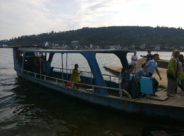 抄小路直达了金梭岛码头,买票开口就要二十块一个人,说我们今晚住在岛上,马上降到五块,弹性好大。渡轮很小很破,不过大概也就五分钟的行程。五块钱还是往返票,回来的时候不查票了,基本上人满即发,每十分钟一班,还是很方便的。