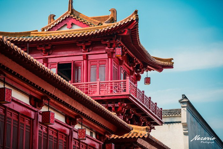 这是到目前为止我认为最宏伟夺目的建筑,红色建筑主体在蓝天白云的映衬下,对比强烈,色彩鲜明,给人以很强的视觉冲击。