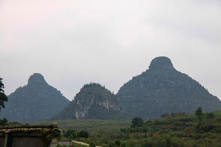 离开黄果树景区是11:50,我们开车前往马岭河大峡谷,于14:10到达马岭河大峡谷,全程高速约183公里,用时2小时20分。 下面这张图是从黄果树瀑布到兴义间的双乳峰,高速上有路标指示。下图拍摄于2011年10月30日,现被一个旅游公司圈了起来,门票70元。这次我们没有去。