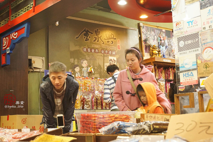 不能错过的当然是安平古镇的蜜饯,最老字号的自然是林永泰兴蜜饯行,但是这家蜜饯行并没有在老街上,其位于台南第一街,至今130年了(不过店内不让照相),Karin说这可是从小吃到大的零食。 老街上有另外的一家蜜饯行,金泉典,本没有林永泰兴蜜饯那么有名气,只是位置对了,采买的人也是络绎不绝。其号称蜜饯的做法也都是纯粹的传统手工,先盐腌渍水果脱去水分,再使用纯糖、蜂蜜、甘草粉和特制的香料去腌制,然后经由日光反复曝晒才能制成。我尝了一些,还是挺好吃的,特别是台湾本地特产的芭乐干啊什么的,大陆买不到,倒是挺不错的伴手礼。