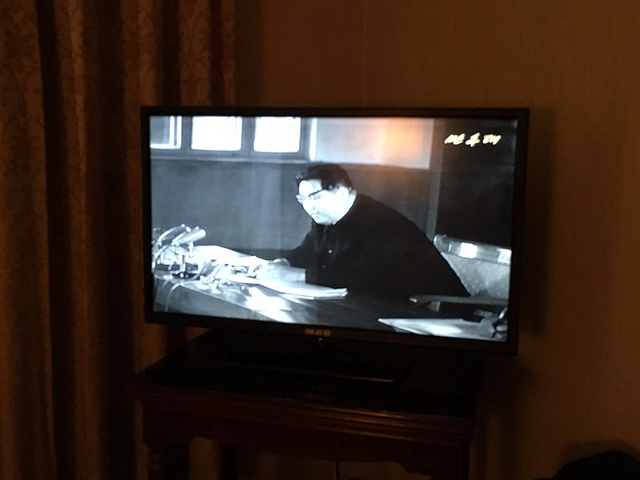 当导游在返程时告诉我们将入驻高丽饭店(平壤市内两个特一级饭店之一)时着实让我失落一下,因为本以为会入驻最有名的羊角岛饭店(特一级,内有赌场,坐落在一个羊角形状的岛上得名,外宾通常会安排在那里,只有一座小桥链接外界,便于控制和管理),回国后看到新闻报道才知道那几天羊角岛已经被来自全球的记者住满了。同行的博士妹妹很是兴奋,解释说高丽饭店在平壤市中心,有偷偷出去夜游的机会,这才破涕为笑。事后遇到住在羊角岛的游客对我们好生羡慕。