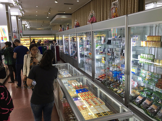 一楼的超市,只可以用人民币、美元和欧元结算。有进口货还有朝鲜特产。抬起相机营业员告诉我不要拍照。
