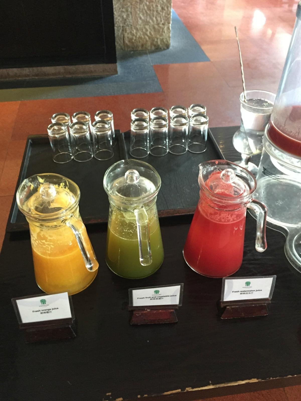 果汁也是鲜榨的,悦榕庄的品质真的好的没话说,西瓜汁、橙汁、奇异果汁都非常的浓郁。