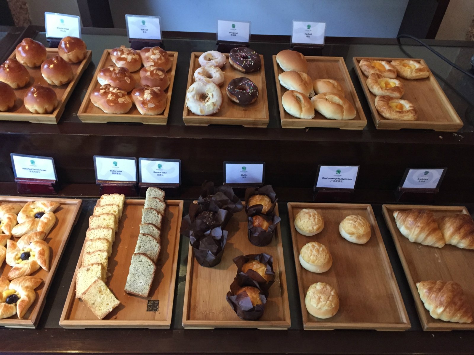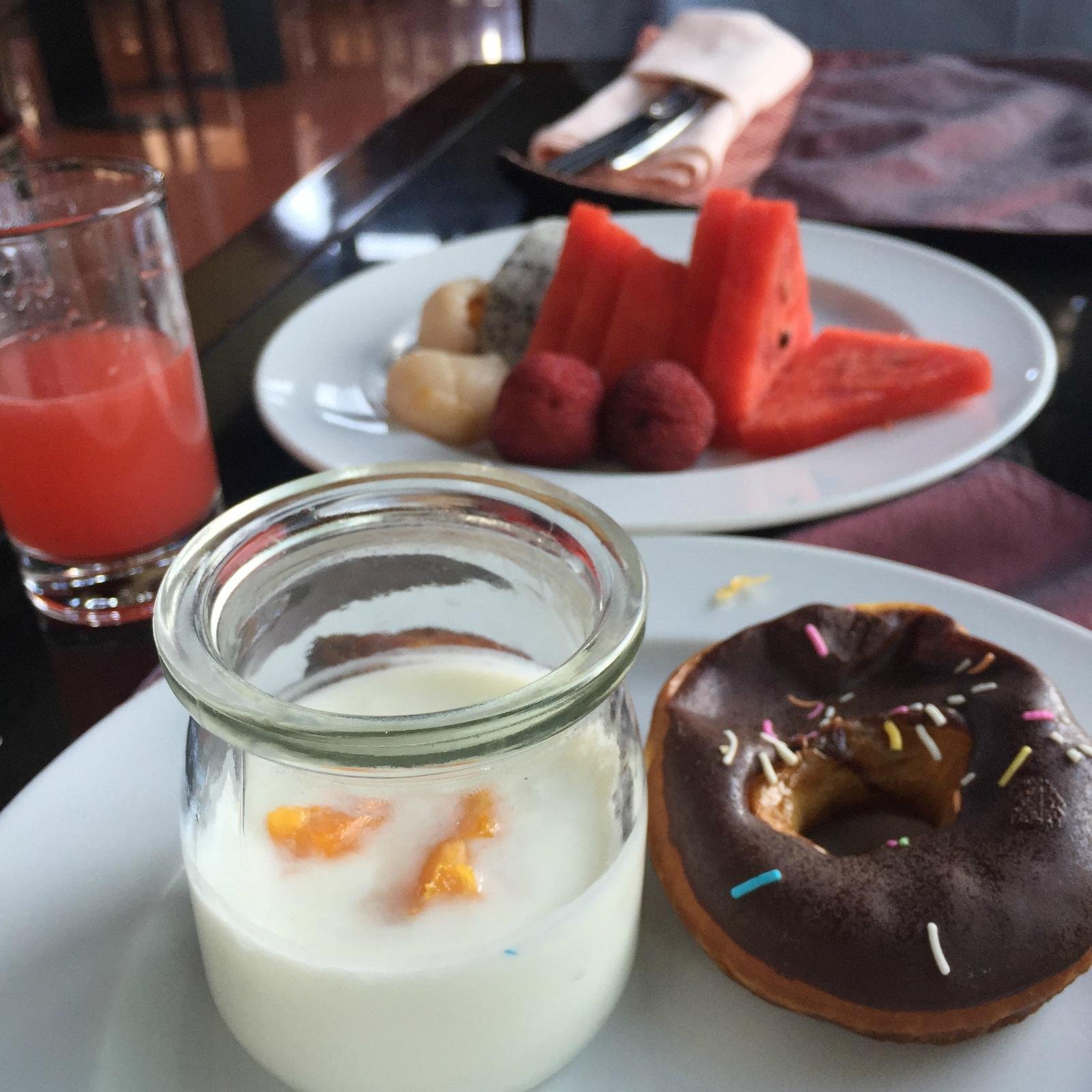 各式的面包和蛋糕也是早餐值得品尝的,尤其巧克力味的甜甜圈可可味的很浓郁,吃一个非常的满足感。牛角面包适合西方人