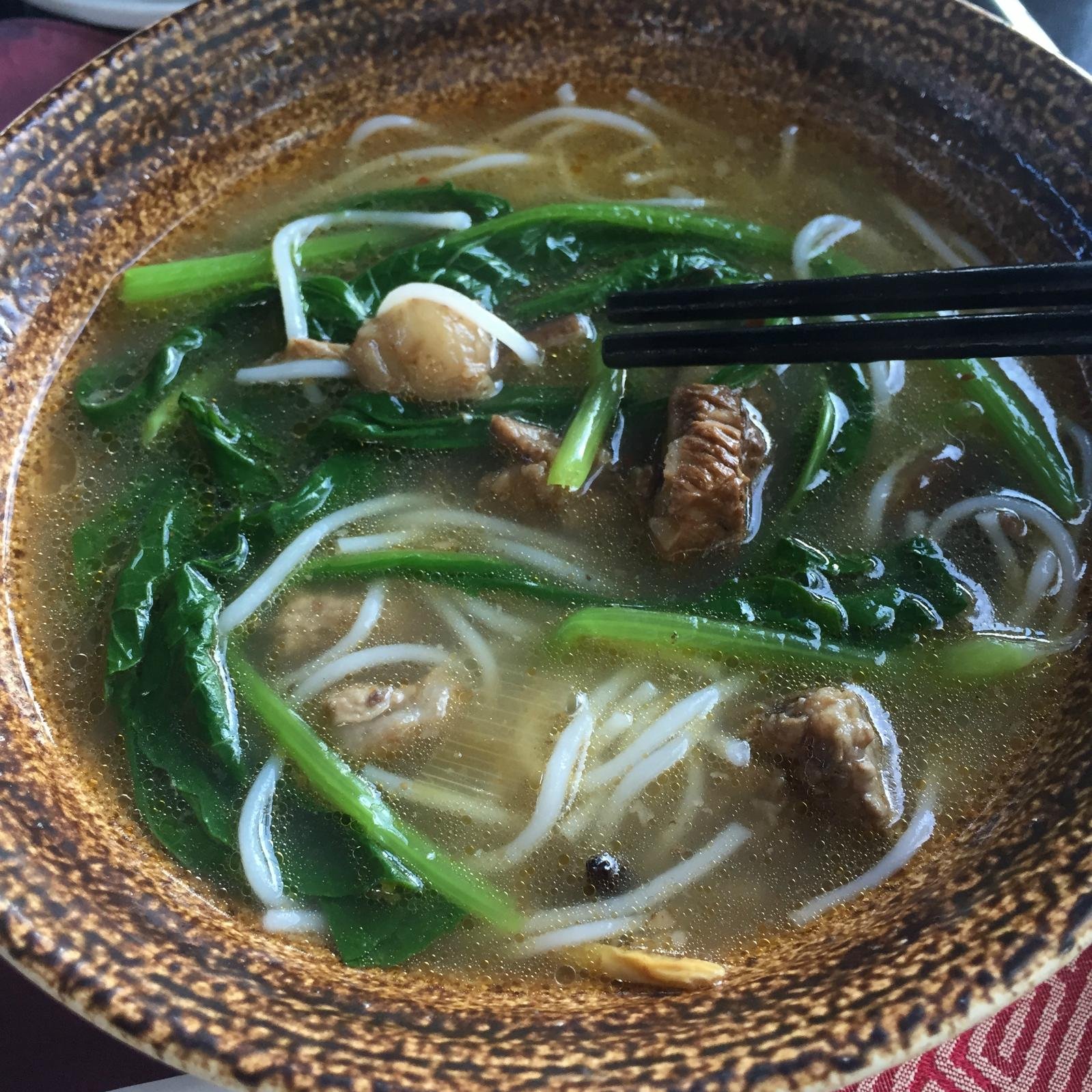 来云南当然主食需要来一碗云南的米线,用料有排骨和青菜,好吃