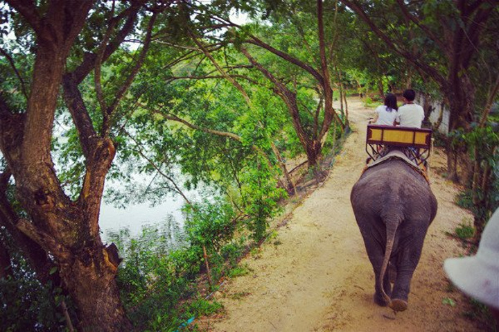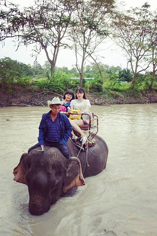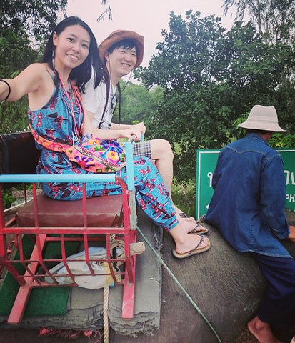 骑上大象了!好激动!两个人一个大象,坐在大象背上感觉好高啊!刚开始还有点怕怕的~ 我穿了双夹脚拖鞋,特别怕鞋子掉下去。。。