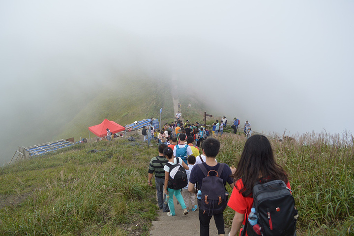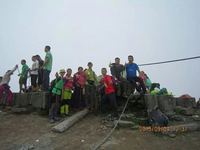 随后在这里遇到团友老猪、君子等人。终于找了一个机会,合影!武功山金顶,海拔1918.3米!这个也是我目前登山的新高度(之前是3月份罗浮山白云顶1284米)