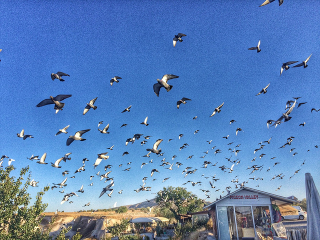 鸽子成群结队的起飞,就飞了一次,被大眼睛抓拍到