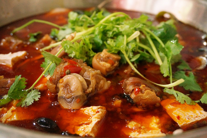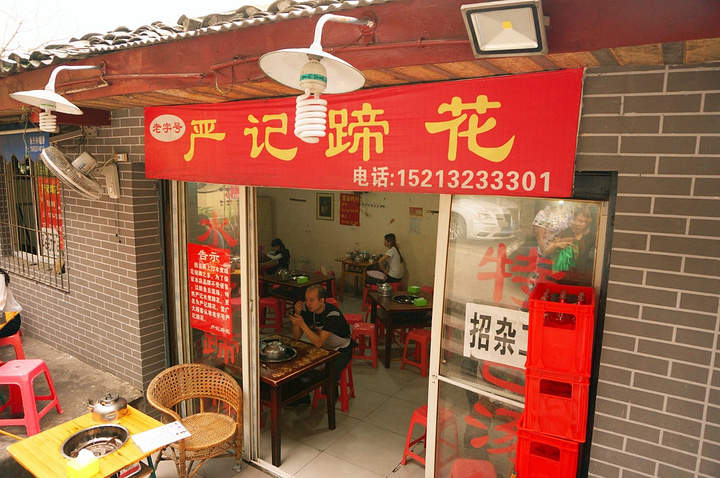 严记水煮蹄花 地址: 沙坪坝区 金沙正街(近磁器口) 人均:50元 严记蹄花,在瓷器口附近,据说不是每天都开的。感谢我重庆朋友推荐,超级好吃~ 关键就是价格便宜,性价比很高,一大锅才98,三个人都差点没吃完~