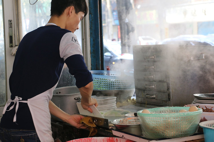 肠粉比金荷家的薄一点,味道也重一点。猪肉肠粉,一般都加有鸡蛋哦。