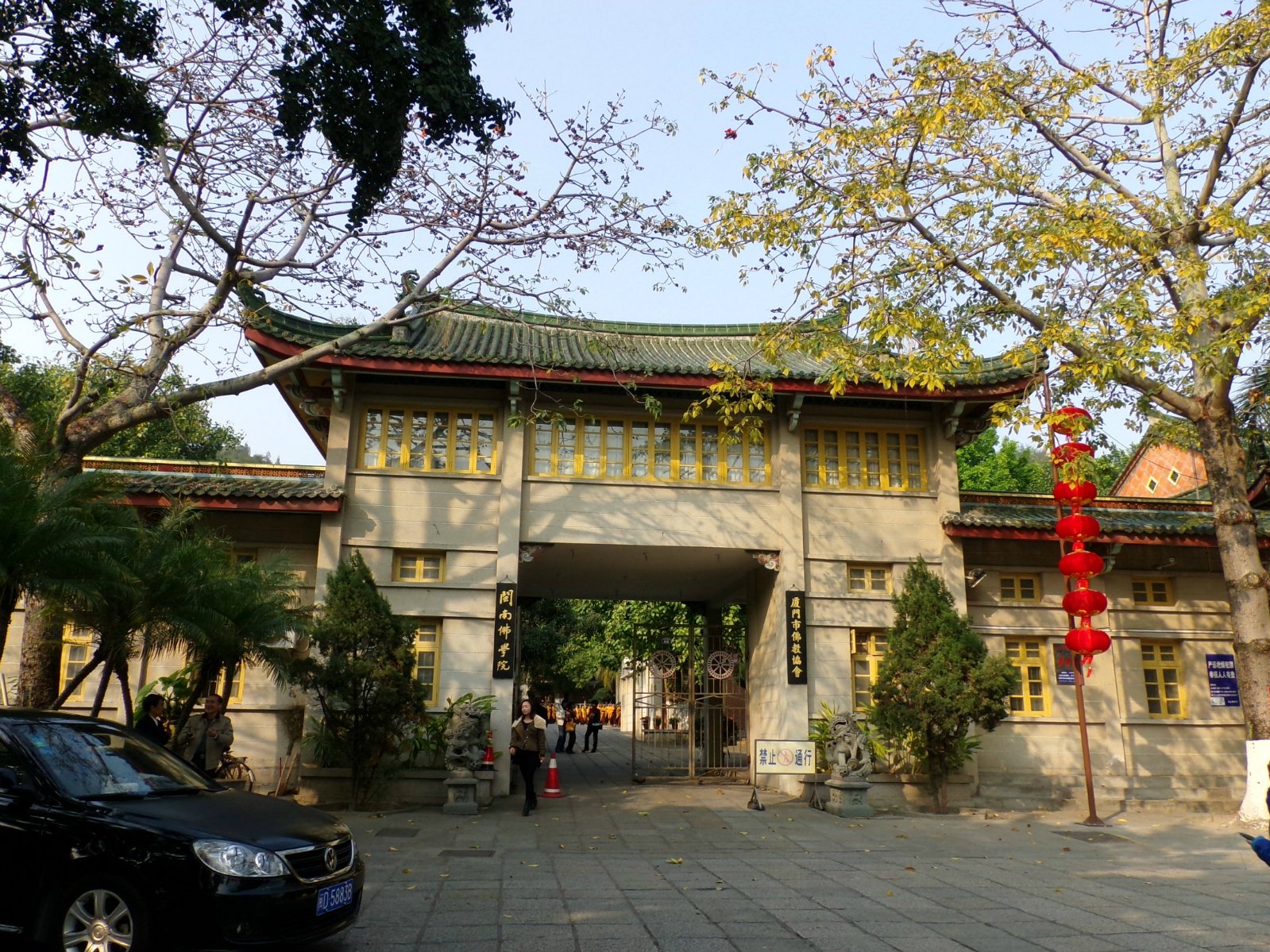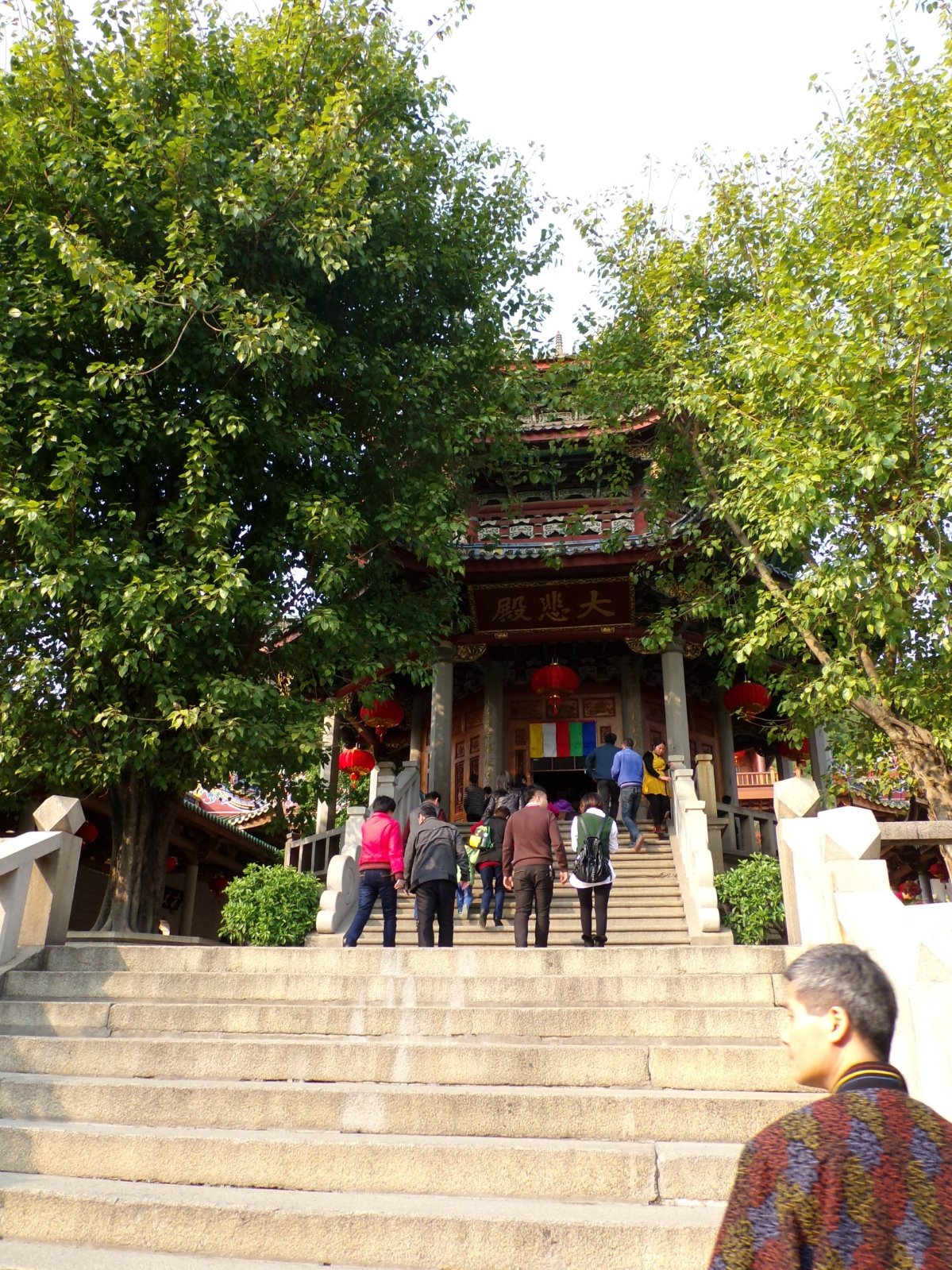 入住之后,放下行李立刻去坐车赶往南普陀寺。厦大西村下车,直走右拐,慢时光的老板娘写的很仔细。坐车也经过这里了,看见它了。香火很旺,信徒很多。进门左手边是蓝伽,这时听见一女私人导游对游客说,关公很厉害,什么宗教都有他。在这里纠正一下,儒、释、道三教都有他。儒教称其为“文衡圣帝”,佛教是“护法伽蓝”,道教最高,尊他为“协天上帝”。我也进去看了,头一次在佛寺里看见关公?还以为关公是道教的呢,貌似神教里也有他。右边是地藏,唐僧,一看就知是。大雄殿,也就是正殿是如来,僧人们正在念经,不允许进入,门口有栅门,一般也不让进。游客堆积在门口观看和尚念经。我继续向前,发现一座塔,大悲殿,供奉的是四面千手观音。很仔细的观察了,它不是十一面的。穿过法堂是和堂,这里不开放,再往前就是上山之路了。