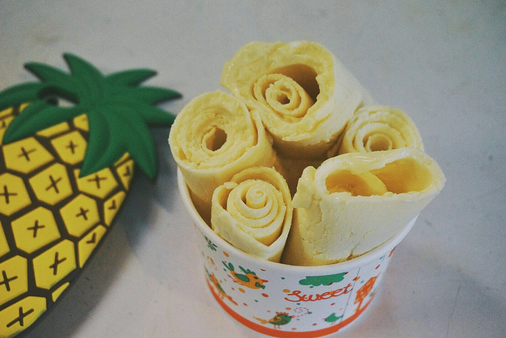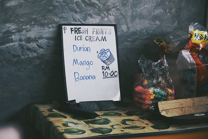 玩了一会 回酒店放了瓜镇买的东西。 然后去网红店吃下午茶。 ▲真浪鲜果店(Kai Song Fruits Stall) 最正宗的榴莲冰淇淋。 距离我们酒店很近,步行10分钟到达! 兰卡威大街靠近瓜镇方向的尽头, Aseania Hotel斜对面 这里的现做榴莲雪糕和芒果雪糕味道浓郁,真是用新鲜的榴莲纯手工制作。 分量很大,10马币/杯,一杯就足够两个人吃 鲜果店的老板是华裔,会讲中文和粤语,但是里面的员工就只能用英语沟通了。 营业时间:下午 12p.m. 至 夜晚11.30 p.m