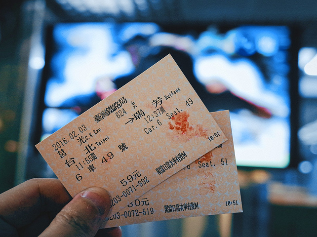 昨天玩的太晚,第二天起来已经10点,早餐以后,散步到西门町站,捷运到台北车站,坐火车去平溪看看 去平溪需要先从台北坐火车到瑞芳,瑞芳站才能坐上平溪线小火车 去瑞芳的火车票比较紧张,时间紧的朋友还是提前一天购买比较靠谱,票价59元台币,11:55分最后2张票了!