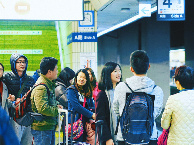 在4号月台等车。还好有好心的台湾大叔提醒我们,这车1小时一班,车头还有位置赶快上车