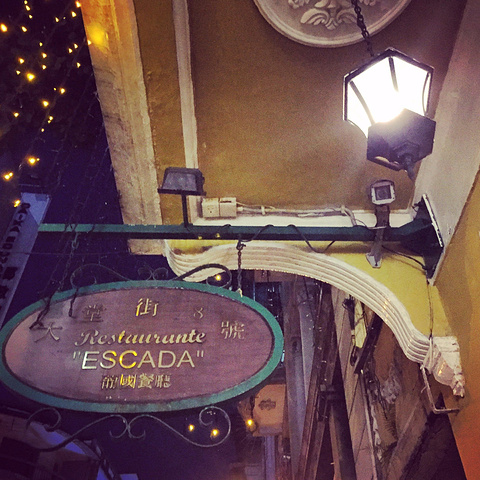 这家叫Escada葡国餐厅开在不起眼的小路上,黄色小别墅挂着Led灯,有些小浪漫 走进去,典型的异国风情吧,虽然没有去过葡萄牙,但是对葡餐也是有念想的 毕竟在上海的时候,老喜欢拖着朋友去吃葡国鸡,但是这次在Escada吃的葡国鸡却更像咖喱鸡,OMG 不过安格斯牛排,除了有点薄之外,倒是不错吃啦~对于Wine,我想说,我喜欢偏甜的 点的这瓶是我的style,并非闺蜜他们的style...虽然我也没有喝多少啦~