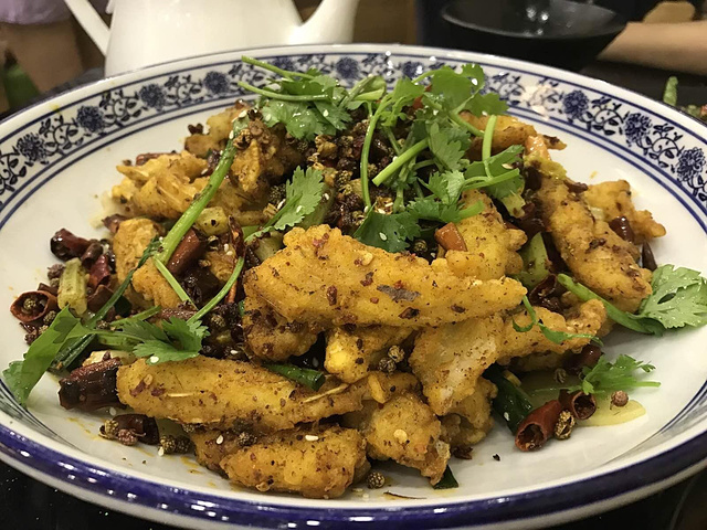 第三天,原计划是去朋友推荐的老牌子-点都德,大众点评查到广州几个区域都有分店,想着去北京路分店喝个早茶,手机排号居然五十几桌。眼看点都德排队无望,一气之下在大众点评找了一家川菜,无骨酸菜鱼专门店,店面很小,座位全满。这一顿辣的好过瘾,连吃几日早茶,点心,粤菜,味觉告诉我,想换口味了[发呆]这家的鱼嫩之外,干锅鱼腩很好吃[色]