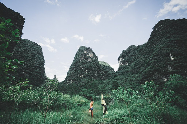 从酒瓶山出来,回头看看风景,典型的阳朔山景,运动与美景的结合,心情确实不错。