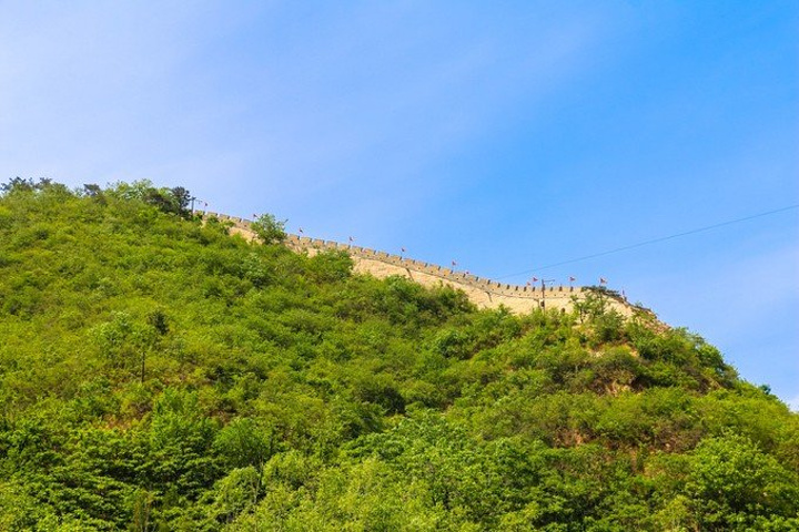 这是西水峪西边复原后的长城,插满了旌旗。