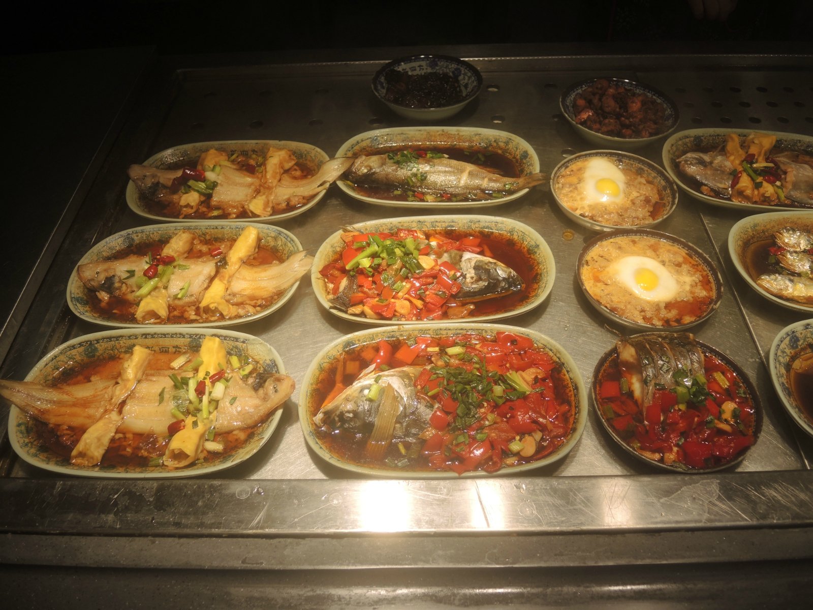 “新四方大食堂”的菜品种挺多的,这是鱼类。