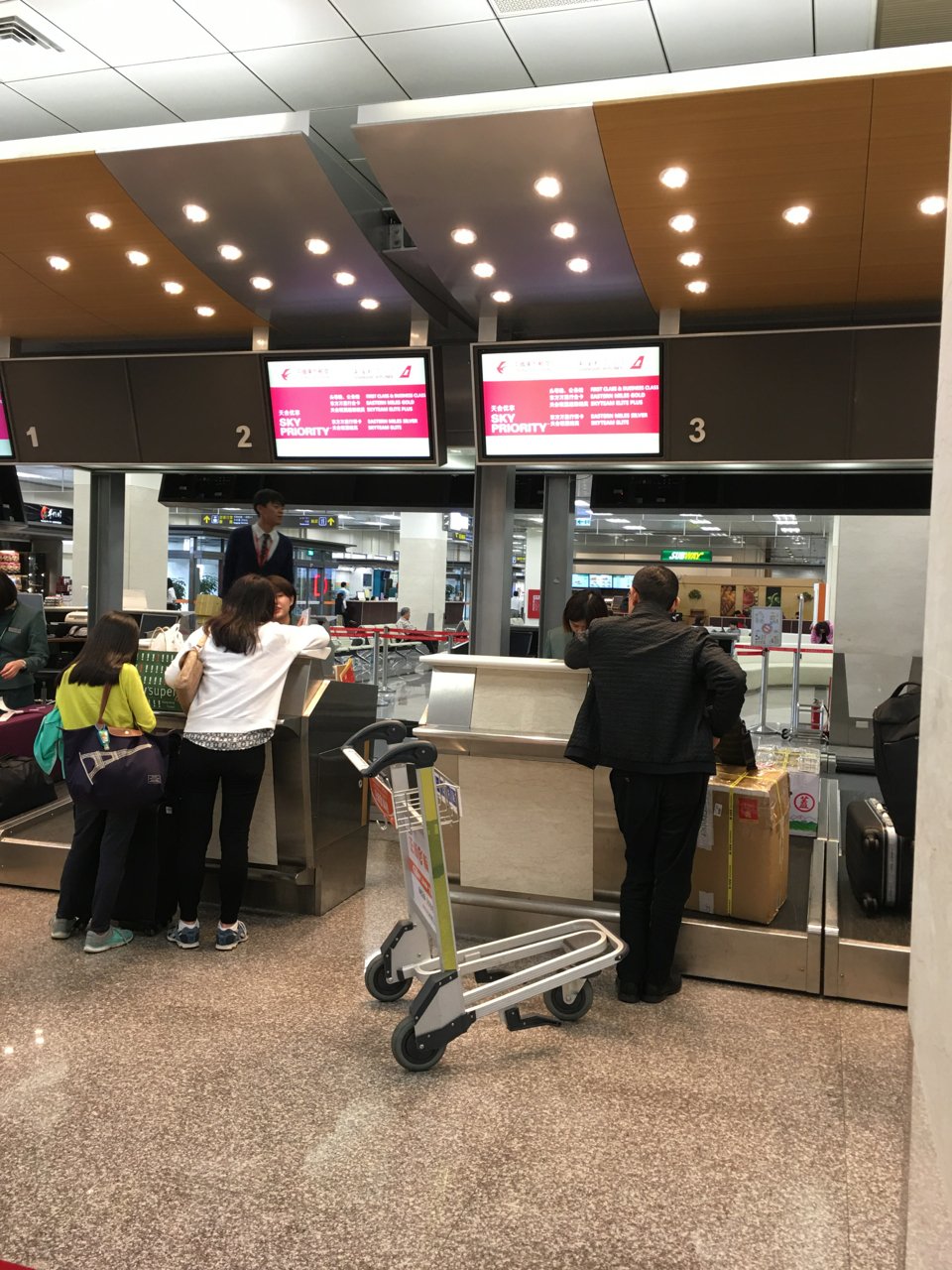 行李华丽丽的超重,每个箱子都超重4kg。。。于是去旁边把里面沉的固体都背在了身上~后来顺利过关了~