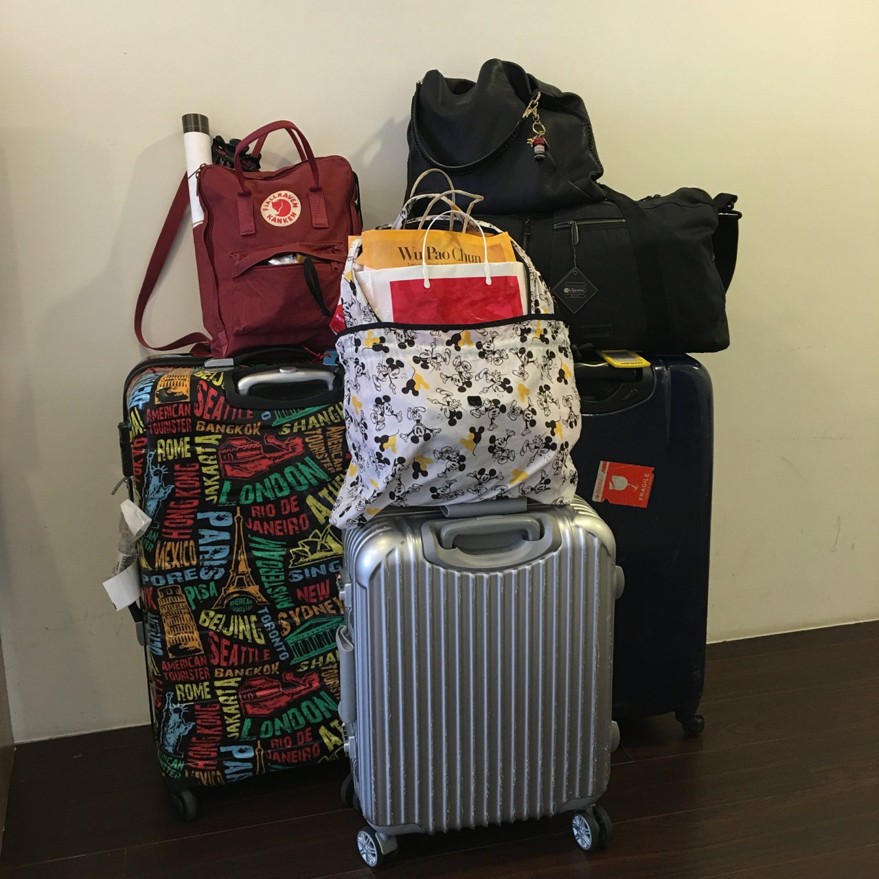 我身上还有个包~整整齐齐的我们要出发去机场啦!