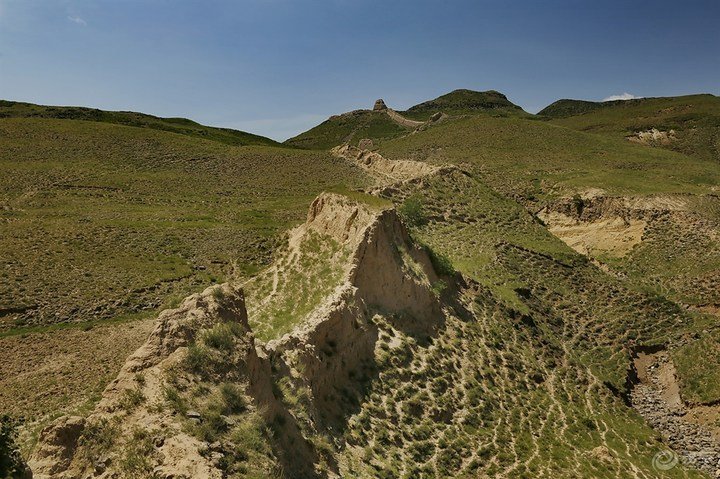 教堂后面的长城才是今天我要走的重点。这段长城并不长,由于墙体碎石和渣土的颗粒,有些地方还是很滑的。