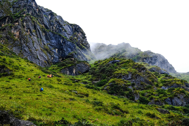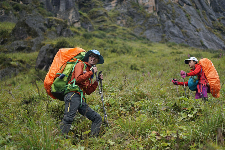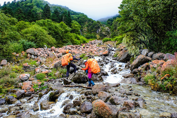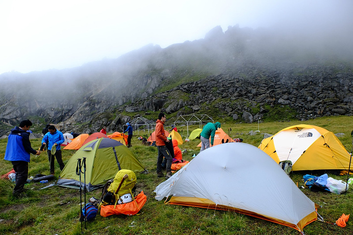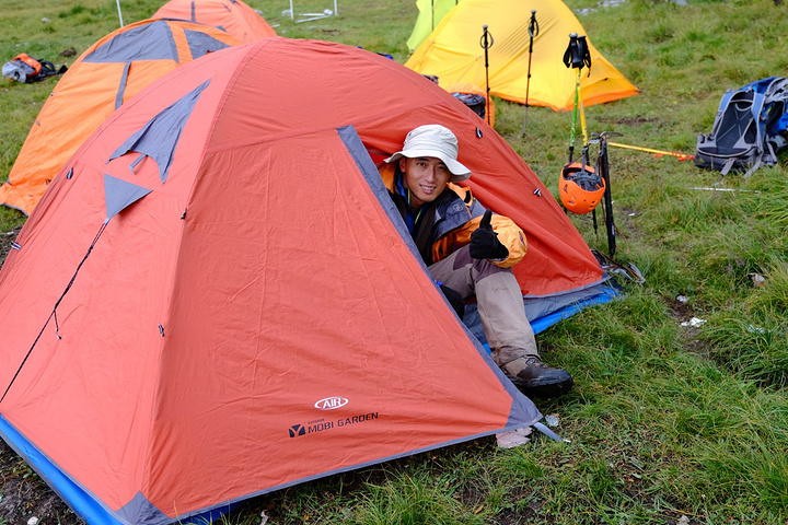 9:30正式踏上半脊峰之路,天气:阴。 雪山攀登目前分3种大体模式: 自主攀登:不借助协作的力量,负重、探路等全凭自己本事,花费较少,但难度和风险较高。 半自助攀登:单独请熟悉山峰的向导、协作、背夫等,有一定的挑战性,但节约了资金。 商业攀登:报名参加商业队,协作比例高,省心省事省力,但花费较高。