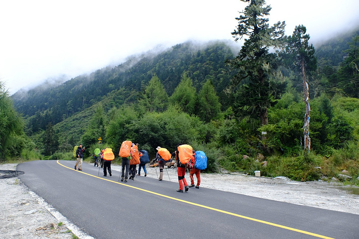我们的背包太多,把景区大把最后1排都放满了,十几分钟之后人坐满了,开始奔赴上海子接待站,离上海子接待站还有1KM的地方就是半脊峰起点,需提前告知车师傅在这里下车。