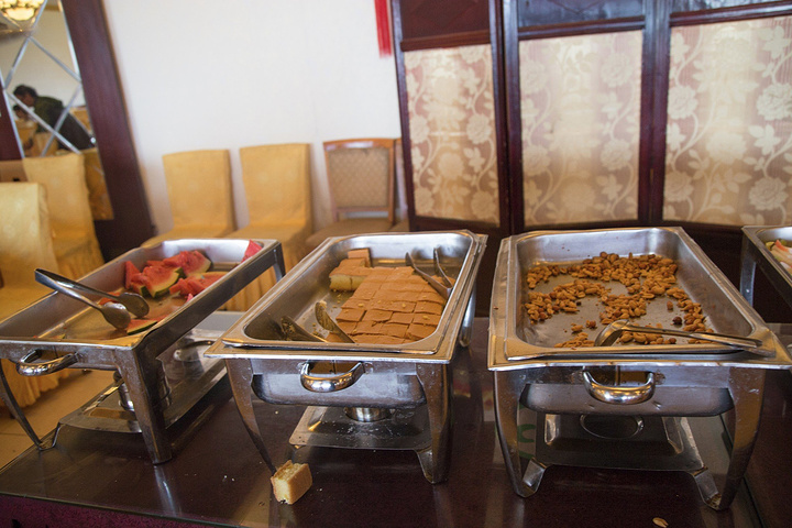 天气好了,我们胃口也好了,碧峰峡游客中心二楼有早餐提供,主要是蛋糕,稀饭,馒头、花生、榨菜、西瓜、羊奶等;