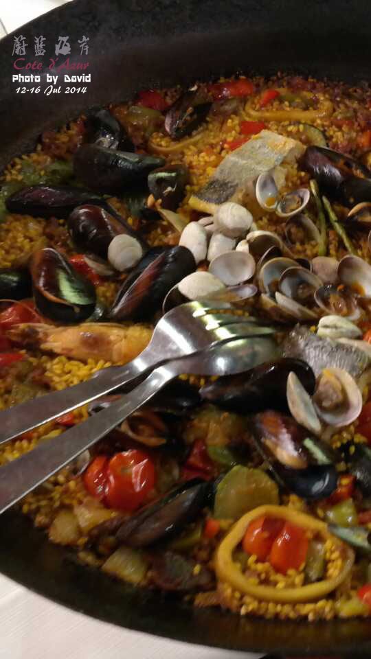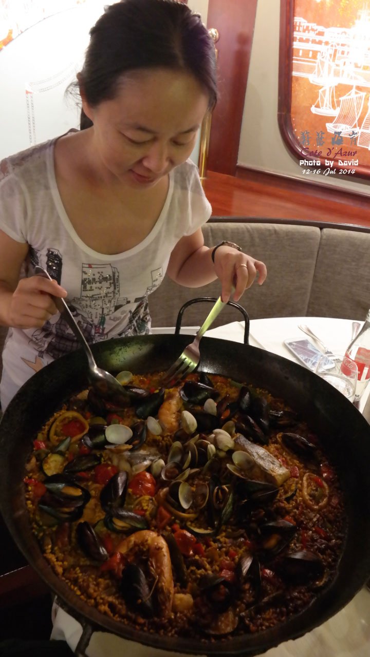 看看已经盛掉了两盆后的大锅吧,那些黑蚬都在开口笑呢!在法国西班牙期间,品尝了好多次海鲜饭,最后不得不承认,这家的卖相和口味是最佳的。按照我们的个人喜好,把它评为蔚蓝海岸最佳海鲜饭,它应该是当之无愧的!
