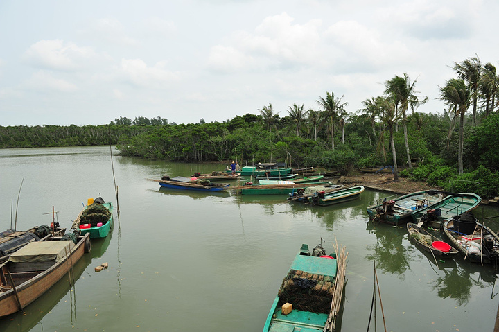 离开红树林,前往东寨海底渔村。做行程时收集到资料,知道这个海地渔村很有说法。但我们到达附近找不到这个渔村位置,到处询问,当地村民都不知道这个地方,导航也只能导到附近。最后找到这个地方。海地渔村就在不远处的海里,这个季节看不到,要到5月份海水退潮时有可能看见。