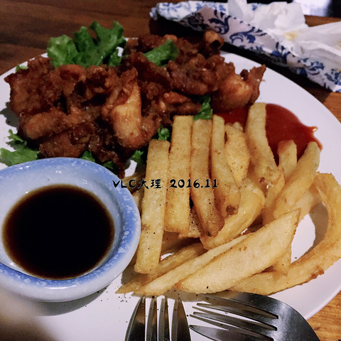 VLC-闺蜜旅行日记2016-11-24《一路向西去大理~洱海边の周末春暖花开》中提到的 深夜食堂(护国路店) 攻略深夜食堂~店面不大,有个小二层,人很多,主要是日式简餐,我们要了炸薯条鸡块和海鲜粥这家店门开在后面,古城街道一侧只能看到涂鸦的名字~店面不大,有个小二层,人很多,主要是日式简餐,我们要了炸薯条鸡块和海鲜粥。炸鸡和薯条~深夜食堂~来自游记一路向西去大理~洱海边の周末春暖花开