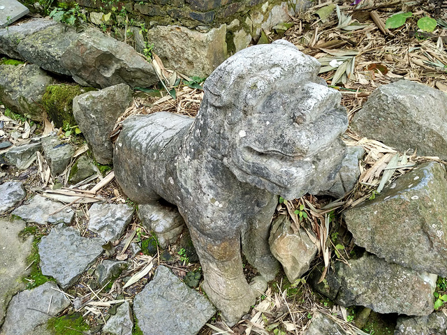 经过龙门村后,一路都是水泥路或者田埂小道,没有什么特别的。感觉这个不像狮子不像牛的吉祥物是狗