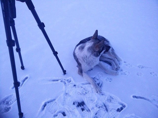 其实在天还没有完全黑之前,在我拍摄的途中,一直有一只汪跟着我,这只汪从我从村子里走出来 ,它就一直跟着我,我一直有犬类恐惧症,当它过来闻我时,我还担心它会不会突然咬我一口,但闻了之后他就一直在我身边跟着我走,我走哪它跟哪,就像一个猎人带着猎犬一样,可惜天黑之后这只汪就不知去向了, 我也没有太在意,直到迷失方向以后,在那个环境下,我才深知,我是多么的需要帮助,哪怕它不是一个人。。。